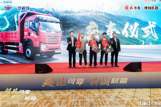 金杯银杯不如用户的口碑,好产品不是说出来的,而是用户选择出来的。本次上市活动上,也进行了热烈而隆重的交车仪式。一汽解放青岛中重型车产品线开发院院长——孙中甲;贵州立盛总经理——黄桦向首批一汽解放青汽JK6用户代表交付了象征财富开启的车钥匙。期待一汽解放青汽JK6的卡友伙伴与一汽解放一同开拓高效节能的新局面,开创更广阔灿烂的创富前景。